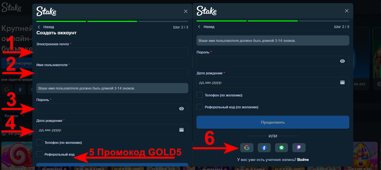 Регистрация в Стейк Казино